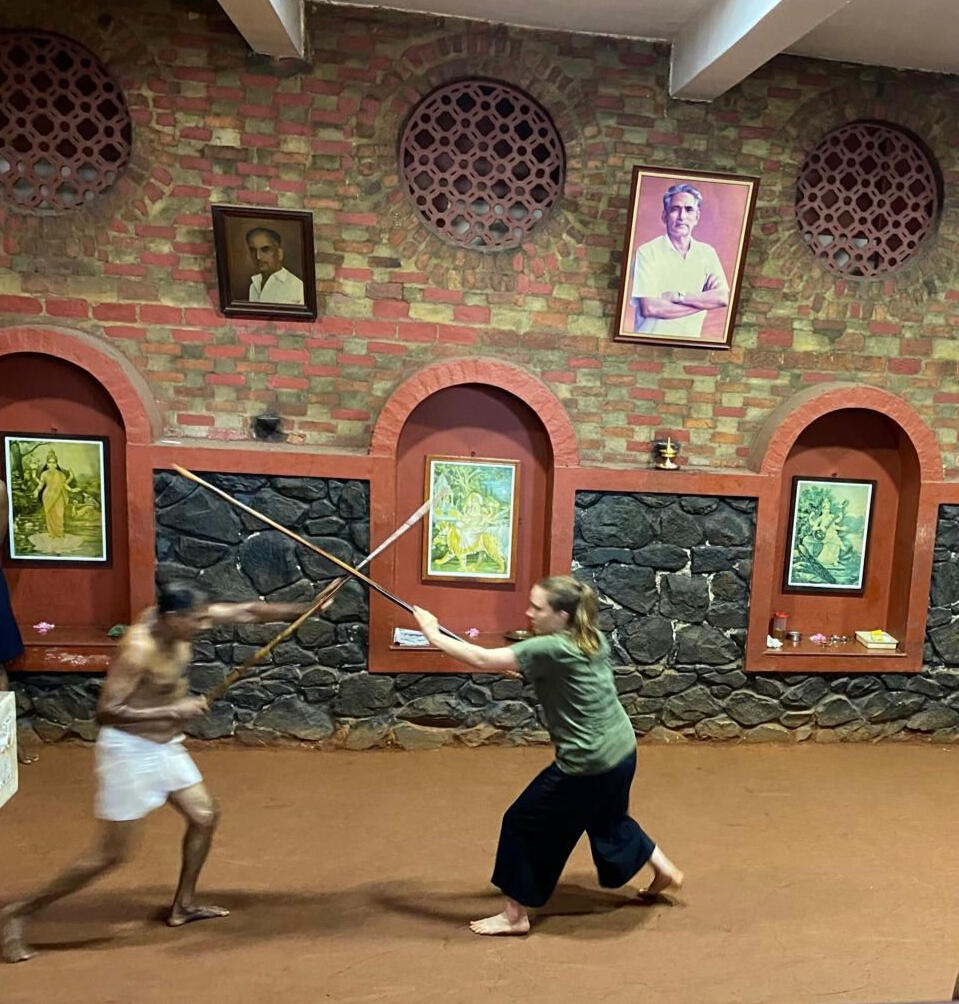 Kalaripayat ist die traditionelle Kampf- und Heilkunst Südindiens. Die Bewegungen im Kalaripayat sind inspiriert von den fließenden, kraftvollen und präzisen Bewegungen von Tieren und basieren auf der ayurvedischen Lehre der Marmas (=vitale Orte im Körper). Durch die dynamischen Bewegungsformen im Kalari-Training wird der Fluss von Prāṇa (=Lebensenergie) aktiviert, gestärkt und ins Gleichgewicht gebracht.So wirkt Kalaripayat nicht nur äußerlich kräftigend, sondern auch tief im Inneren. Es bringt Körper und Geist in einen wachen, kraftvollen Zustand.Die traditionelle südindische Kampfkunst wird in der Linie des CVN Kalaris in Trivandrum, Kerala unterrichtet.